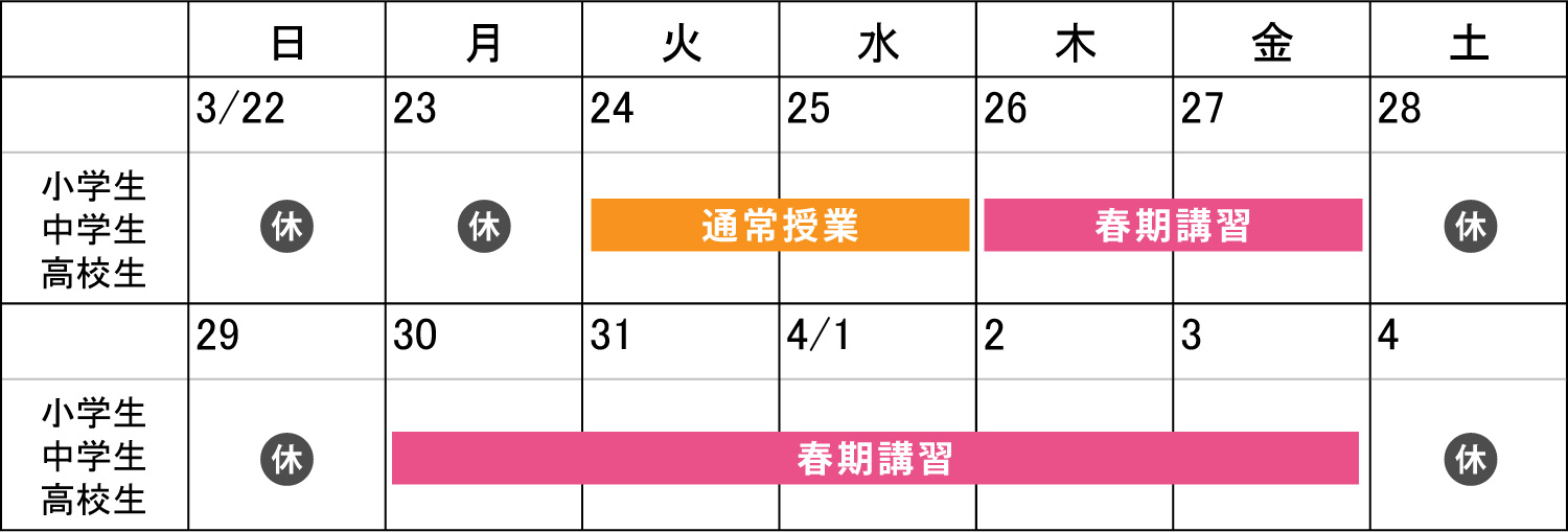 受講開始前に、受講日時が決まった春期講習時間割作成表をお渡しするためにお越しいただく場合があります。